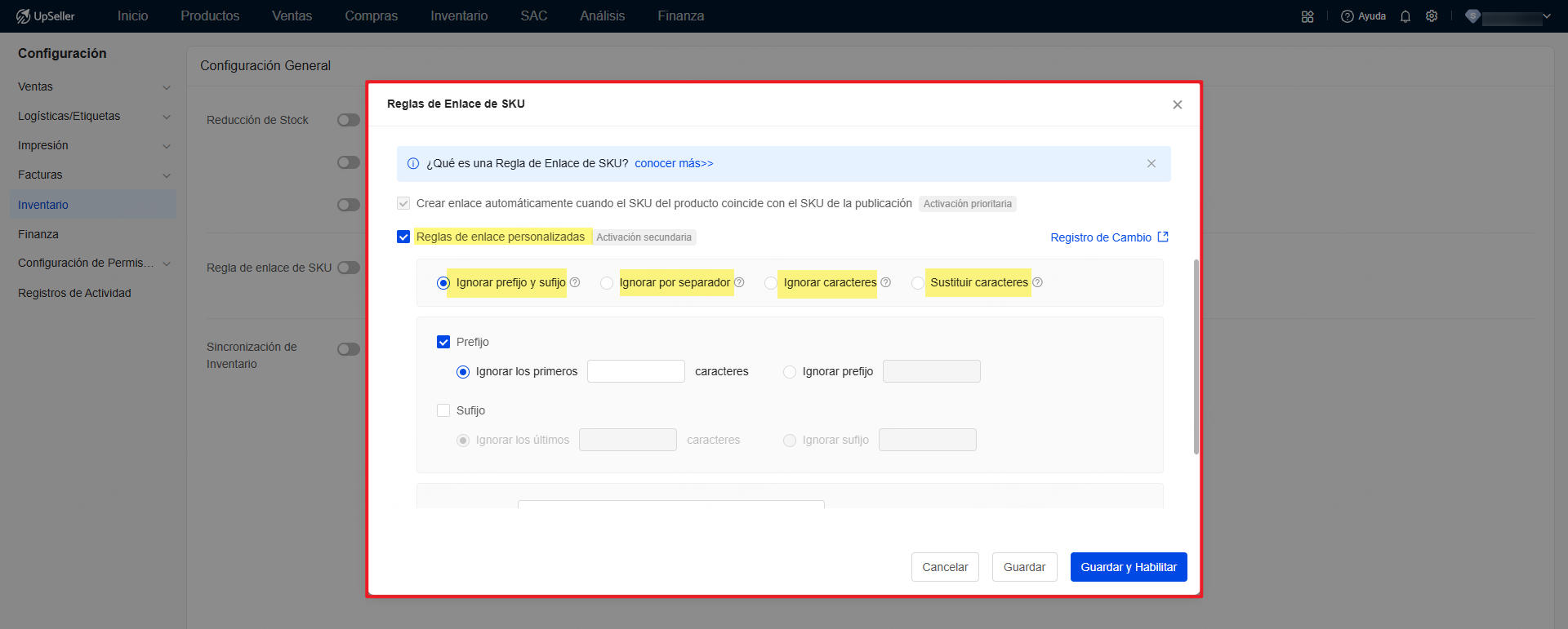 [Configuraciones] Permite reglas de enlace personalizadas de SKU para automatizar la vinculación de forma eficiente