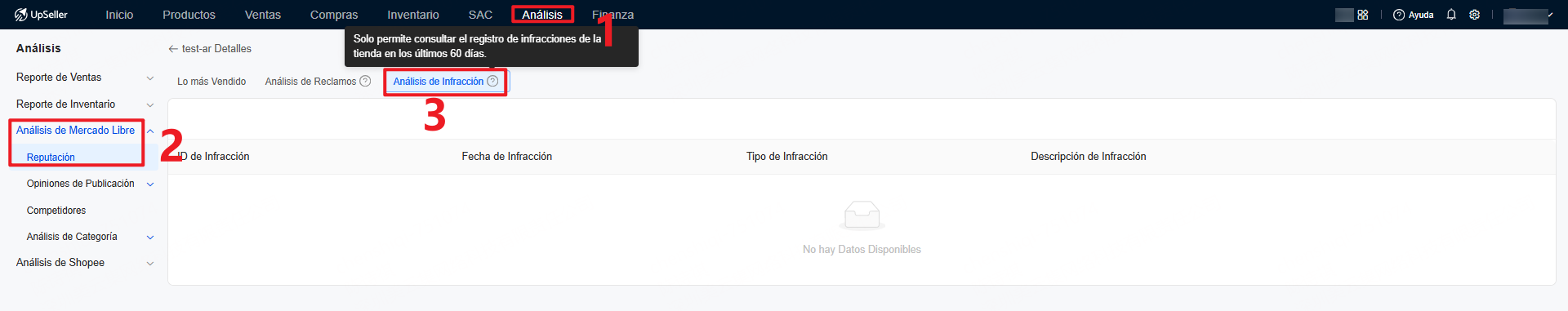 [Análisis] Permite consultar el registro de infracciones de la tienda en los últimos 60 días en Reputación de MELI