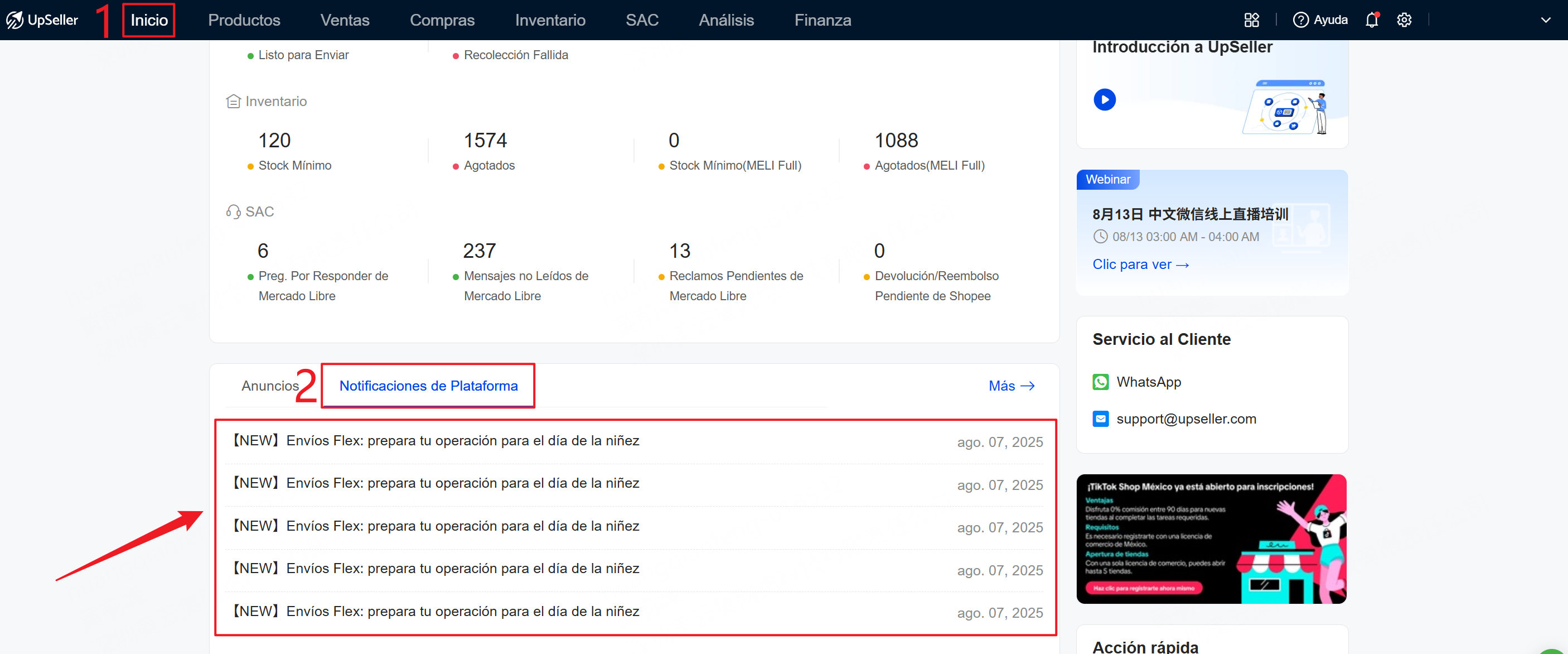 [Inicio] Permite ver las notificaciones de la plataforma MELI