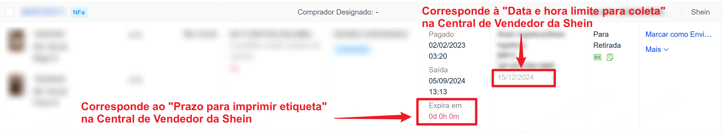 - O Horáio "Expira em" no UpSeller corresponde ao "Prazo para imprimir etiqueta" na Central de Vendedor da Shein.