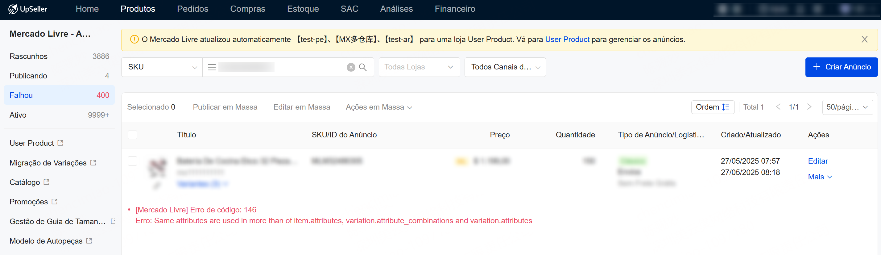 Motivo: Os preenchidos no campo [Atributos] estão duplicados.