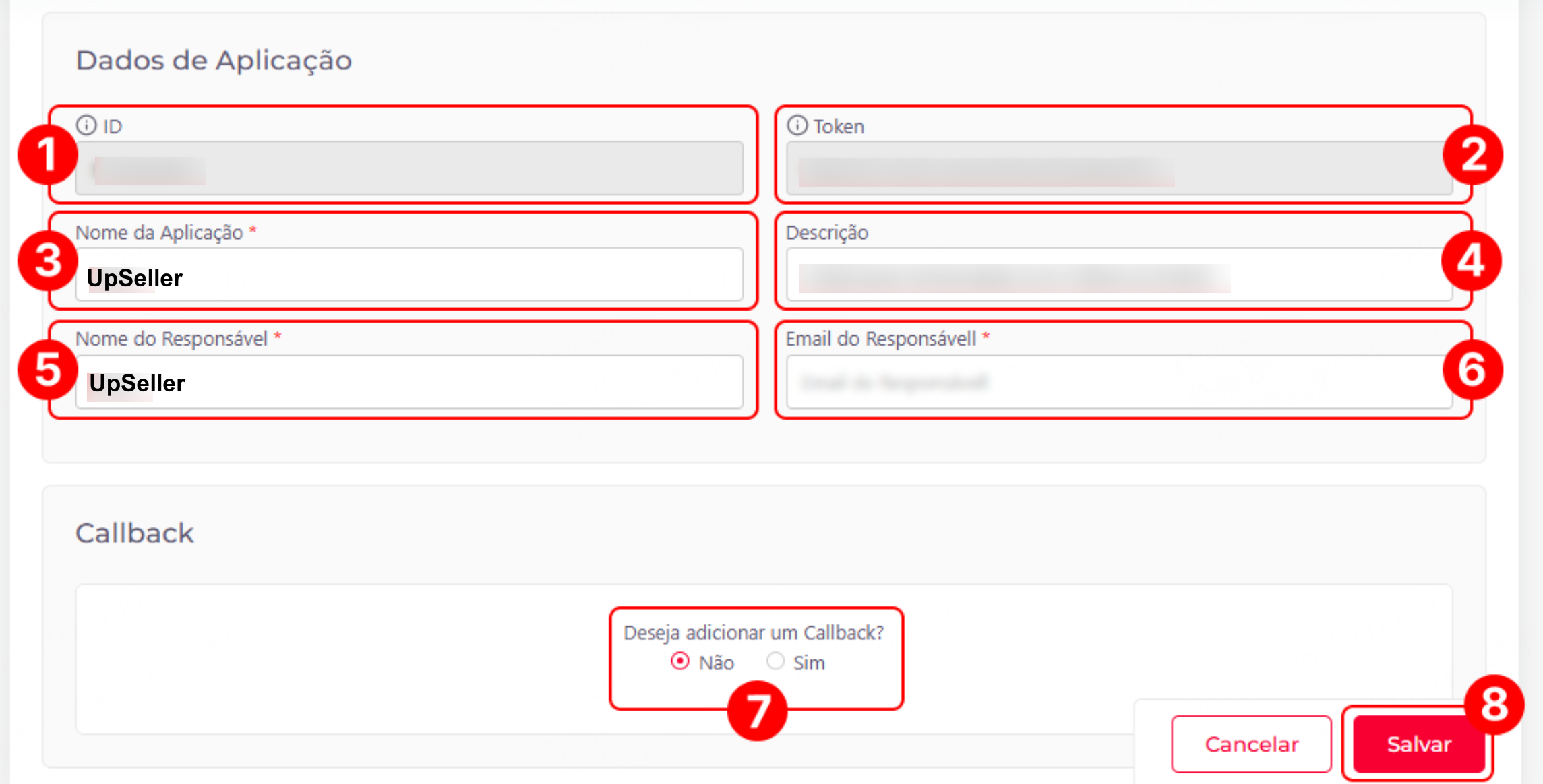 - Descrição: preencha com Criado para comunicação com o UpSeller