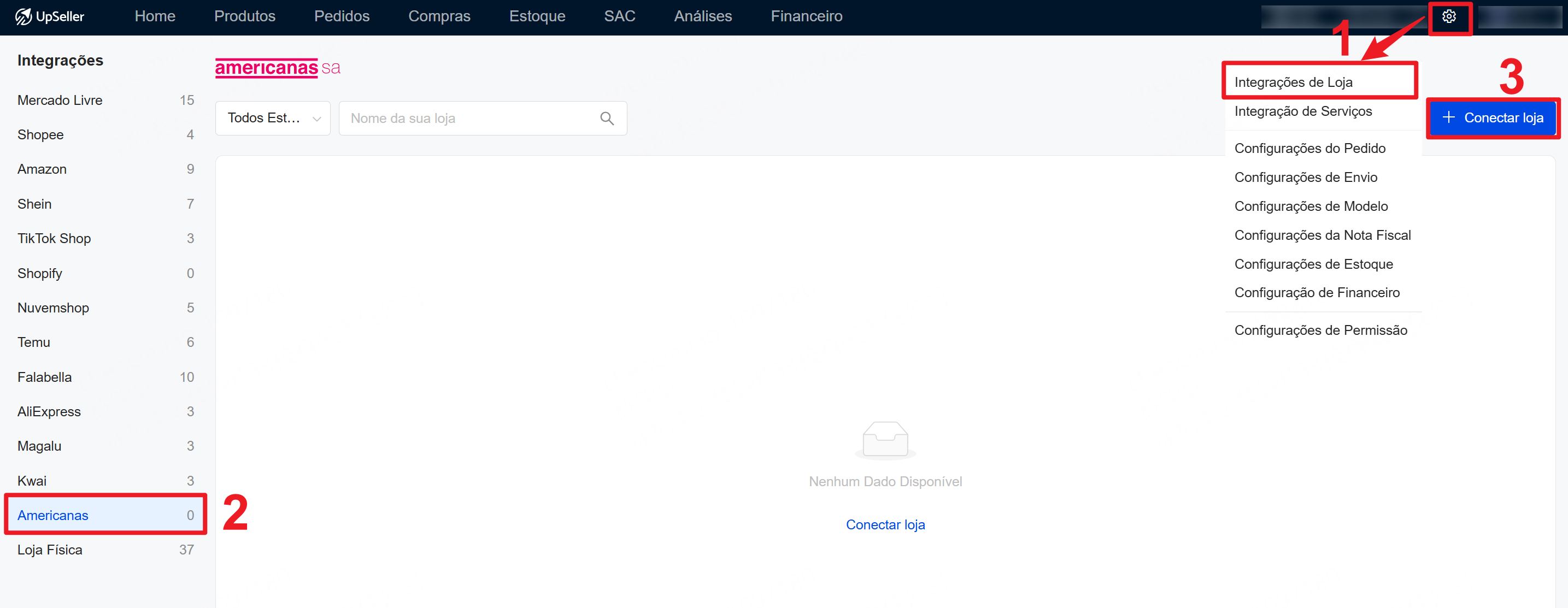 Passo 2: Clique em "Integrações de Loja" >> Clique em "Conectar Loja"