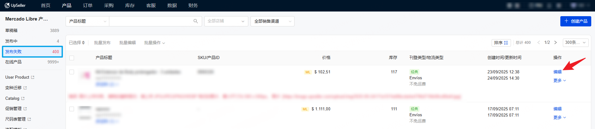 在发布失败中,点击“编辑”进入该产品编辑页>>找出重复信息并修改