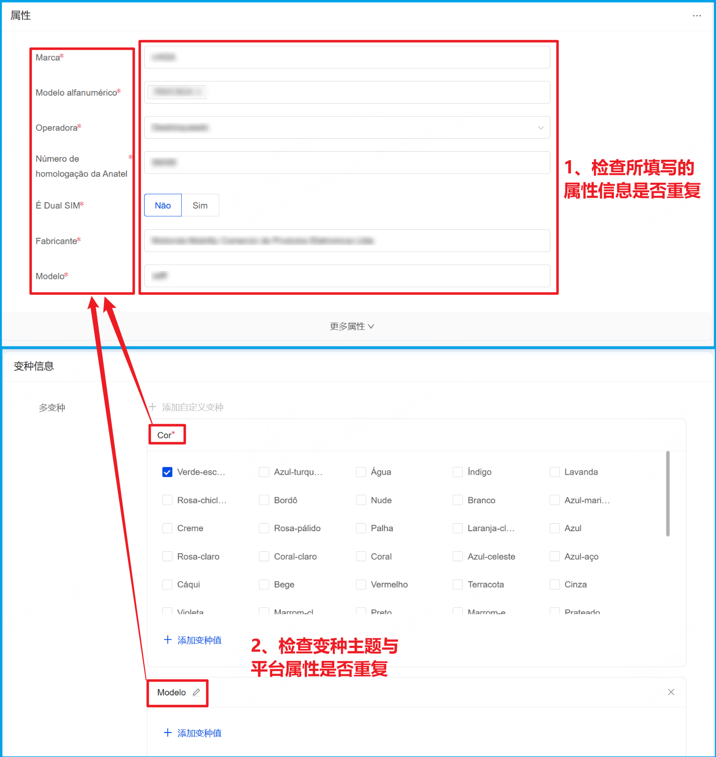 [Mercado libre] 平台检测到你在产品【属性】模块中填写了重复的值,导致刊登失败。请进入产品编辑页,检查【属性】模块是否存在重复值。若有重复,请修改后再重新发布产品。